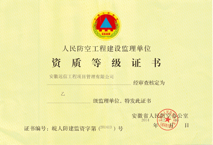 公司人民防空工程建設(shè)監(jiān)理資質(zhì)成功升級