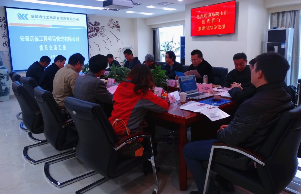 11月20日上午,馬鞍山市建管處監理管理科科長兼監理分會名譽會長丁永生率領馬鞍山邁世紀工程咨詢有限公司總工程師鄧自隆、安徽天翰工程咨詢有限責任公司副總經理兼總工周文杰、科建工程建設監理有限責任公司副總經理賴孟、博力建設監理有限責任公司總工辦主任宛定宏等一行九人,前來公司考察交流工程監理信息門戶系統應用情況。公司董事長余松林、總經理朱敏、常務副總兼總工郝傳山和質量安全部主任夏和平等與來賓一行進行了座談交流。