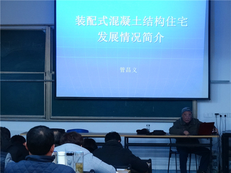 管昌義老師從裝配式建筑的概念、國外發展掠影及國內發展現狀、裝配式住宅管理工作要點等方面對裝配式住宅及產業化發展的進程進行了詳細的講解。課上,老師不時列舉該類建筑在國際國內的代表工程,整個課程在輕松愉快的氛圍下進行,既讓員工感受到了行業發展的前沿,又拓寬了視野。