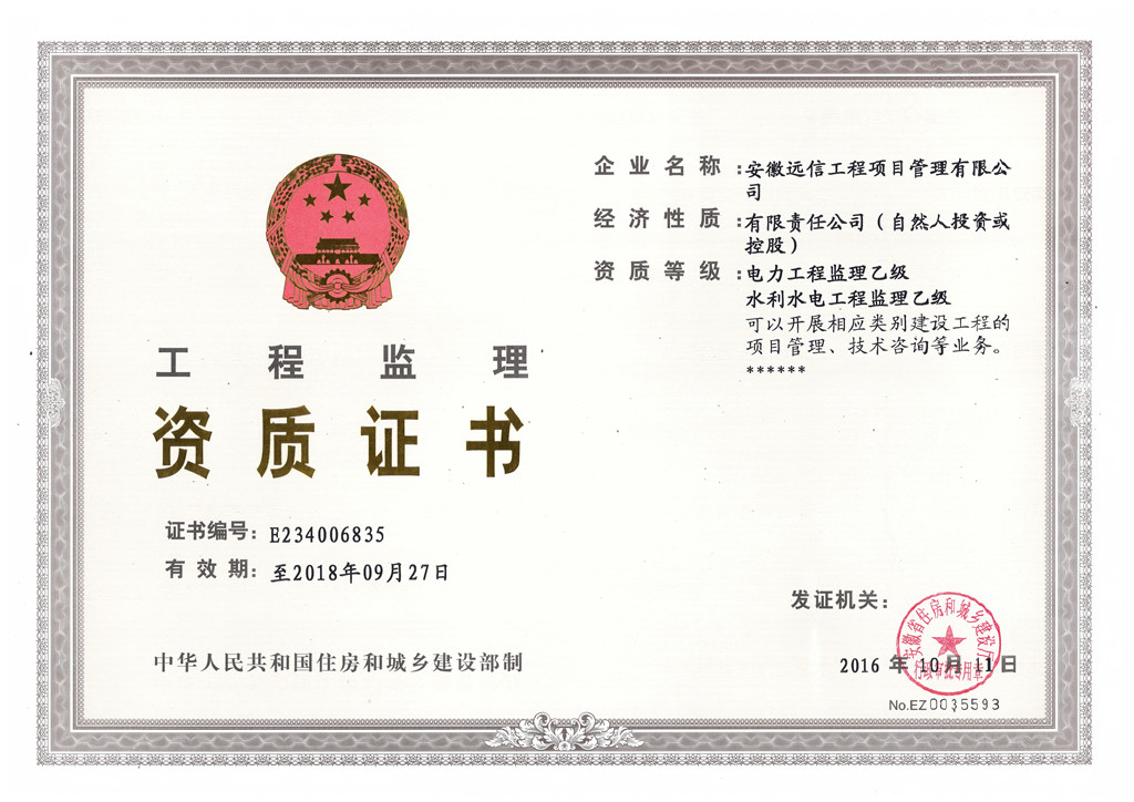 在我國經濟處于調整產業結構、轉變發展方式的大環境下,監理行業面對巨大的挑戰和機會。公司主動求變,積極推動企業業務范圍拓展,向多元化業務格局的構建上繼續邁進。下半年,公司成功申辦了水利水電工程監理乙級資質(可承擔總庫容1億立方米以下水庫工程、總裝機容量300MW以下水力發電站工程以及引調水、灌溉排澇、河道整治、城市防洪、圍墾、水土保持等其他水利工程)。