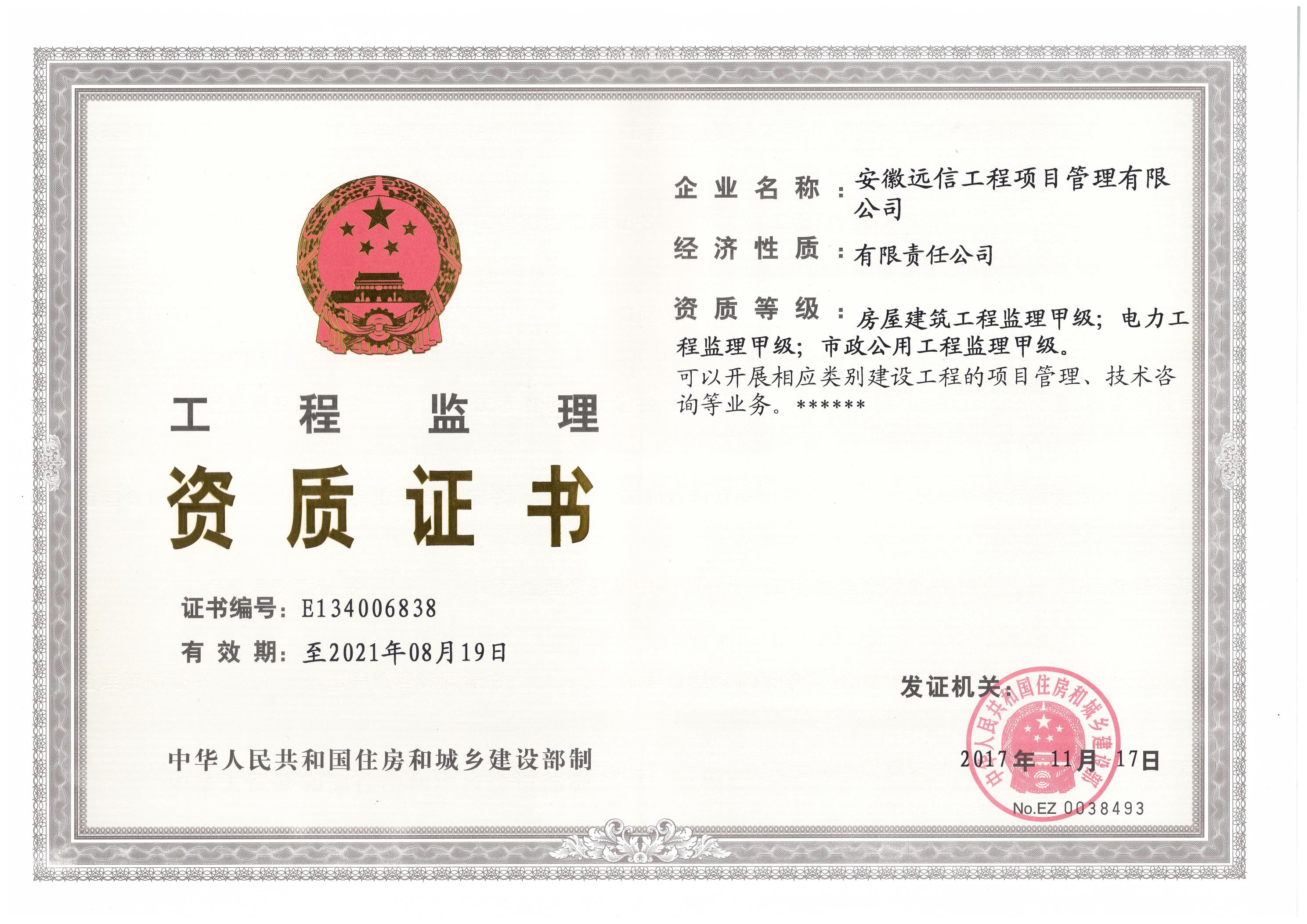近日,自省住房城鄉建設廳獲悉,我公司申報的機電安裝工程監理乙級資質喜獲審批。加之2017年11月份獲住房城鄉建設部批準的電力工程監理甲級資質,目前我司已具備房屋建筑工程監理甲級、市政公用工程監理甲級、電力工程監理甲級、水利水電工程監理乙級、機電安裝工程監理乙級五項住房城鄉建設部門審批資質,為下一步綜合資質申請工作奠定了堅實的基礎。