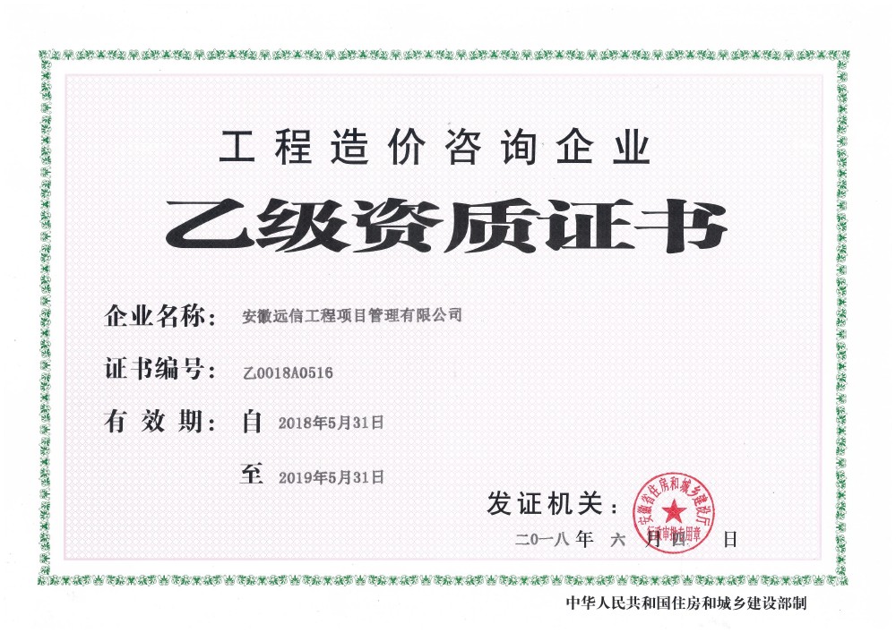 公司開辟業務新領域 發布時間:2018-06-07 閱讀量:1577 近日,經省住房和城鄉建設廳審批核準,公司順利取得工程造價咨詢乙級資質。該項資質的順利取得,將為公司向全過程工程咨詢領域拓展提供有力支撐,使企業綜合實力得到進一步增強。 上一篇:省委常委、秘書長陶明倫蒞臨我公司監理項目指導下一篇:巢湖市市委書記耿延強蒞臨巢湖二中新校區項目調研
