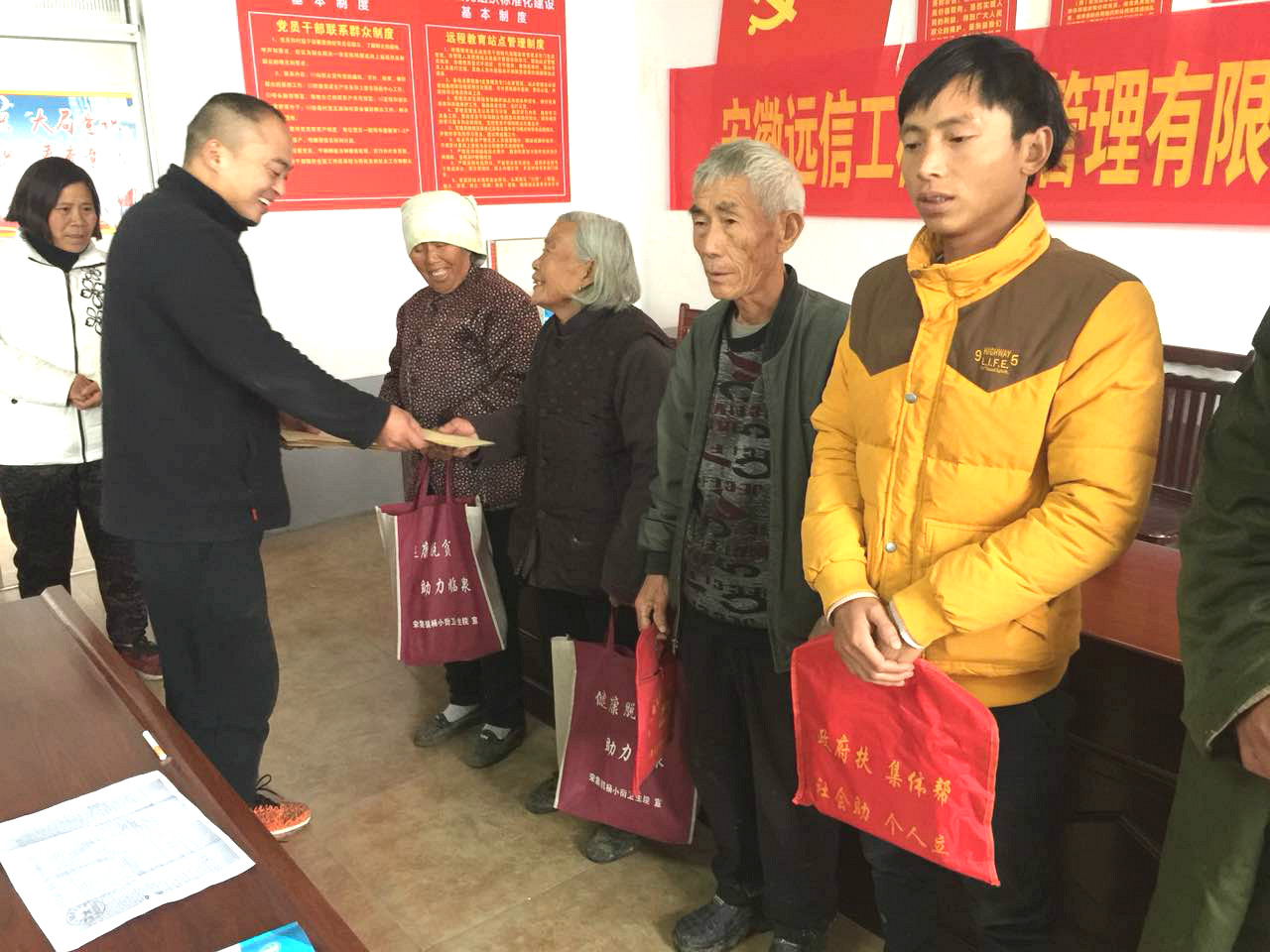 儀式上,安徽遠(yuǎn)信臨泉巡查組組長(zhǎng)王磊代表公司向建檔立卡的八個(gè)困難學(xué)生家庭捐獻(xiàn)了兩萬元愛心款,同時(shí)對(duì)受贈(zèng)學(xué)生家庭提出了殷切希望并致以美好祝愿。
