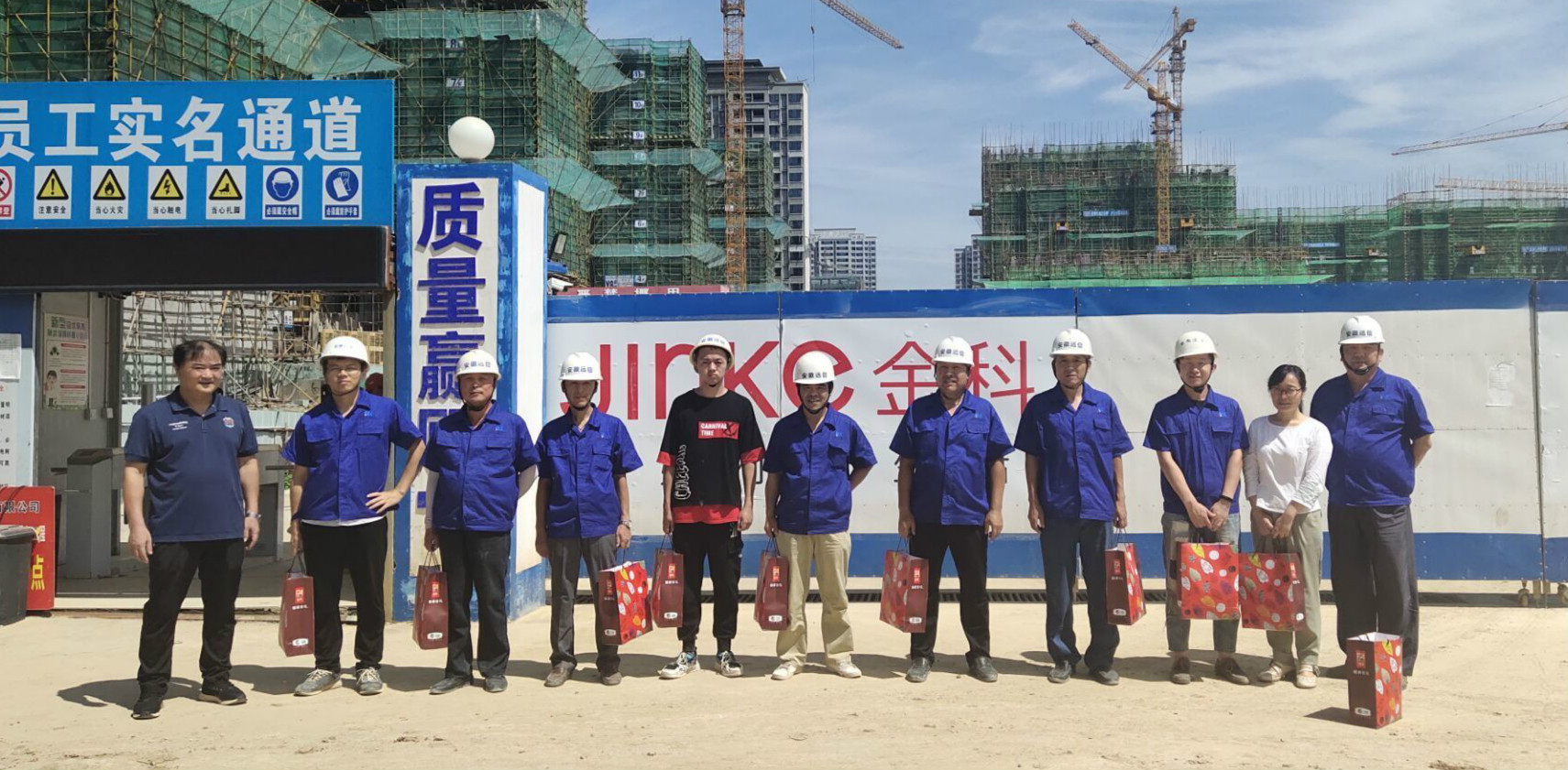 慰問期間,公司領導先后來到安大藝術學院教學樓、星泓金融創新城、美科公館、巢湖人才公寓、肥西館驛安置點等項目現場,實地查看了項目部工作環境、詢問現場工作情況、防暑降溫和勞動保護情況。所到之處,公司領導不僅對項目人員的辛勤付出給予了充分肯定,同時也再三囑咐他們要切實履責,重視高溫天氣的現場安全隱患排查,同時科學合理調整作息時間,加強防暑降溫措施。一聲聲問候、一句句囑托,一件件貼心的慰問品,恰似夏日里的涼風,沁潤著一線員工們的心田,讓他們心里收獲了滿滿的感動和歸屬感。