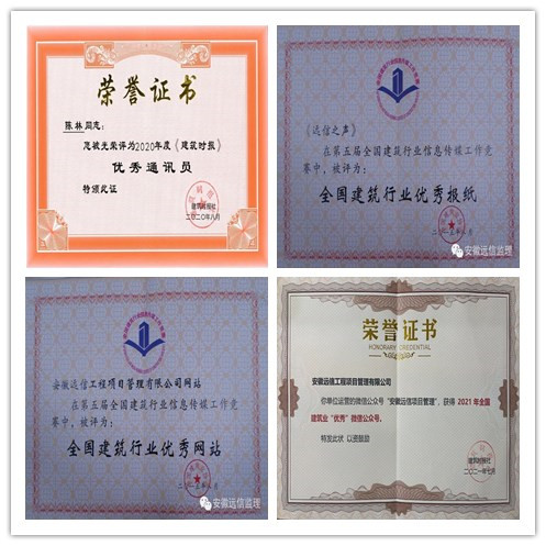 安徽遠(yuǎn)信公司歷來注重企業(yè)文化引領(lǐng),力爭(zhēng)塑造行業(yè)優(yōu)秀品牌。自2011年以來,公司企業(yè)報(bào)、網(wǎng)站、微信公眾號(hào)建設(shè)工作成果豐碩。公司網(wǎng)站、企業(yè)報(bào)《遠(yuǎn)信之聲》連續(xù)四年榮獲“全國建筑行業(yè)優(yōu)秀網(wǎng)站”、“全國建筑行業(yè)優(yōu)秀報(bào)紙”榮譽(yù)稱號(hào),是唯一一家獲此殊榮的安徽省監(jiān)理企業(yè)。2021年7月,全國建筑業(yè)優(yōu)秀微信公眾號(hào)榜單揭曉,由我公司運(yùn)營的官方微信公眾號(hào)“安徽遠(yuǎn)信項(xiàng)目管理”獲得2021年全國建筑業(yè)優(yōu)秀微信公眾號(hào)稱號(hào)。 諸多榮譽(yù)的取得,凝聚著每一位通聯(lián)工作者的責(zé)任和使命,傳播企業(yè)正能量,弘揚(yáng)主旋律,助推公司品牌文化發(fā)展,以提升公司文化軟實(shí)力。